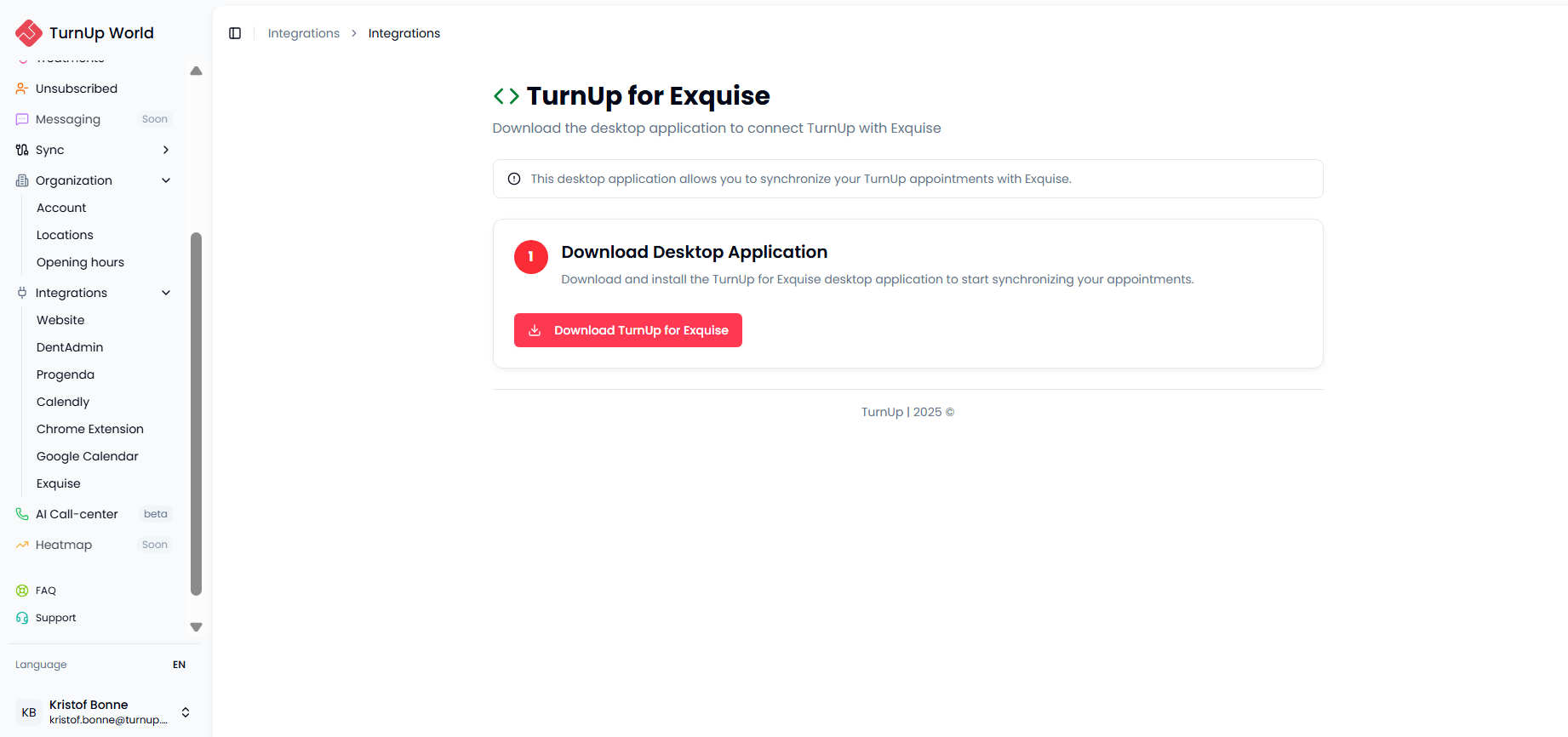 TurnUp.Exquise.Desktop is a desktop application that integrates directly with the Exquise Next Generation system. It allows clinics to efficiently manage waitlists and create last-minute appointments.